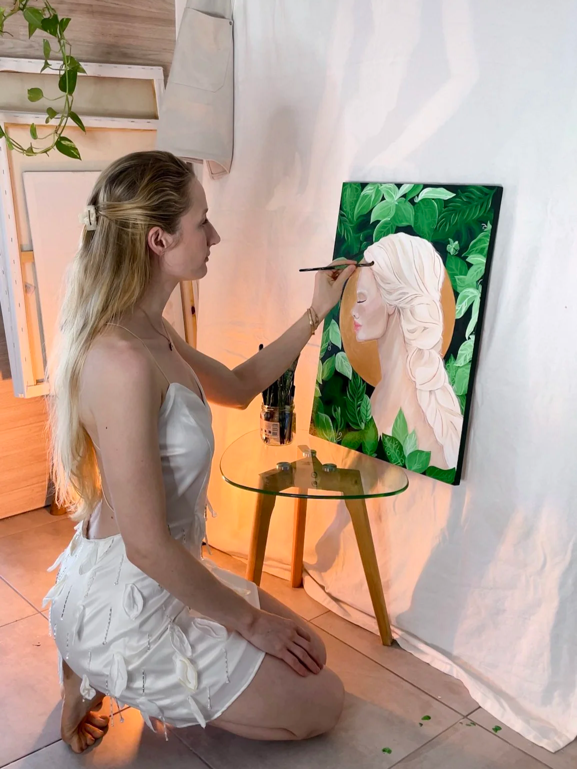Now, as a full-time artist, I explore themes of nature—especially the lush, vibrant landscapes surrounding me here in the Caribbean—spirituality, embracing feminity, and the profound connection between women and the natural world. My work reflects my journey—one of transformation, reflection, and artistic expression.